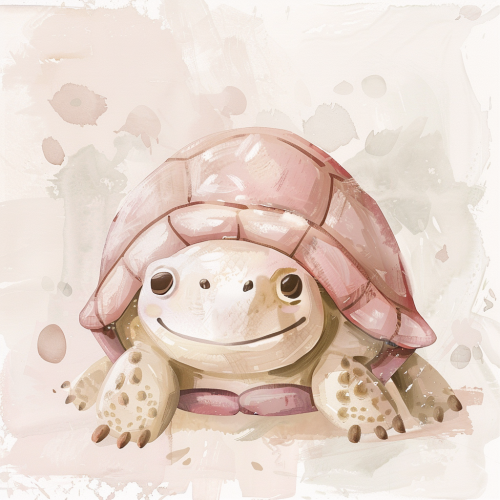 cute smiley turtle, childlike illustration, blush pink white beige, perfect detailed, soft outlines, isolated on white background, gibbli style --v 6.0
