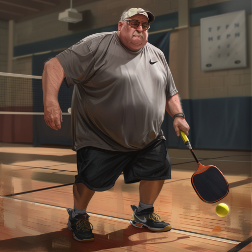 friendly giant human playing Pickleball, he has black shorts, and a nike tshirt --v 6.0