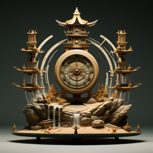 meditative sand art, pendulum, ancient japanese, video game concept art