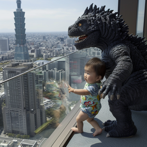 the biggest baby in the world stomps like godzilla on a city --s 50 --v 6.0 --style raw