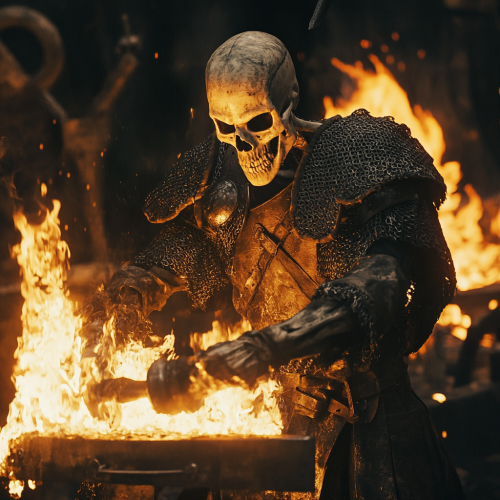 A ruggedly handsome Viking warrior with a muscular human body with bronze color skin that hardens under duress, intricate tattoos of warrior achievements, clad in minimal dark leather attire with fur accents. Ultra realistic and finely detailed handsome face. He stands on a rocky edge, The humanoid with a barbarian sword, curved horns and determined gaze embody resilience and strength, ready to face any challenge. UHD, 4K, --v 6.0