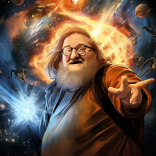 Gabe Newell as an all-powerful wizard that has conquered the planet, comic book art style --v 5.2