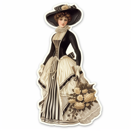 ET dressed as a vintage Gibson girl, sticker, white background --v 6.0