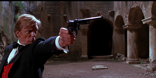 Donald Trump in a Quentin Tarantino film, Tarantino, cinematic, wide screen, anamorphic lens, action, exciting --v 6.0 --ar 4:2 --chaos 50
