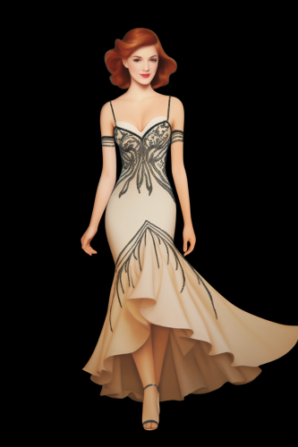 beautiful ginger hair smiling woman walking by Enoch Bolles, full pose, confident look, v-neck lace dress, --no text, letters --ar 2:3 --s 750