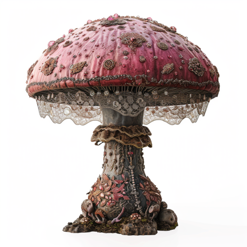 one isolated gothic mushroom lace tulle and leather psychedelic, front view, white background, made of gems, sumptuous, octane render, weta digital, ray trace, elegant, luxury, hypermaximalist --v 6.0