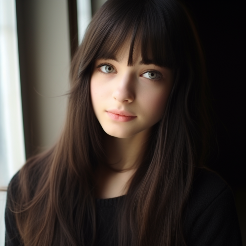 girl, black hair, brown eyes, Trisomy 21, 20 years old, straight long hair