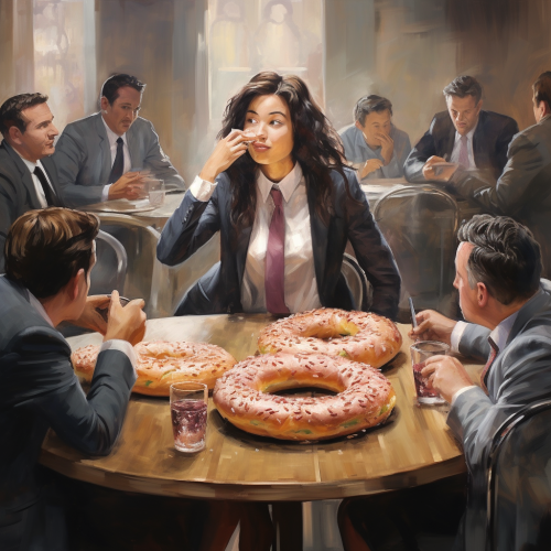 paint a picture of a bagel with cream cheese in French impressionalist style