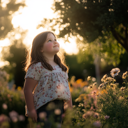 A portrait shot of a 12-year-old girl with a chubby body, looking directly at the camera, with vibrant colored hair, in a cozy living room, soft and warm atmosphere, with sunlight gently filtering through the curtains, shot with a Nikon Z7 II, 50mm f/1.4 lens, natural soft tones --ar 3:4 --style raw