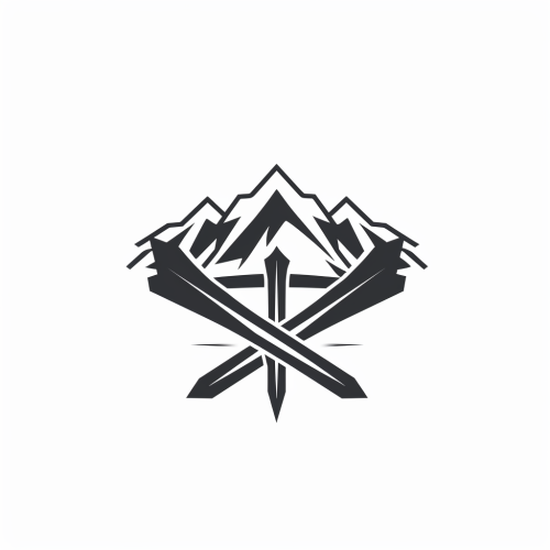 vector black and white minimalistic crossed alpine skis with mountains in the background, logo style