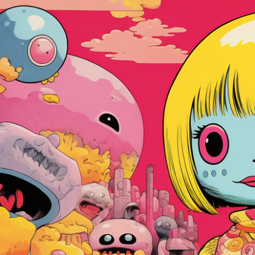 freaky, bizarre, psychedelic, illustration, Vintage japanese toys world poster, blob girl doll, japancore, in the style of japanese manga --upbeta