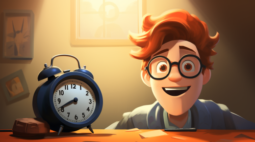 Video thumbnail for a podcast, focus on a fun alarm clock character in the style of Pixar, It's Been a Week --v 5.2 --ar 16:9