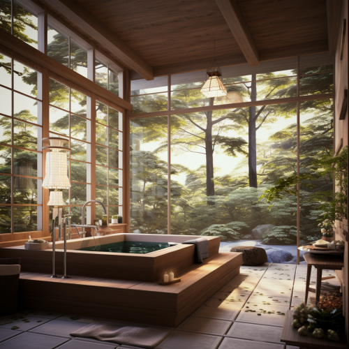 Create a highly detailed, sharp, and photorealistic basketball court design with a half-court layout featuring a tatami-style court, surrounded by cherry blossom trees in full bloom. The court should accurately reflect the colors of the Japanese flag: pure white for the court surface with a vivid red circle in the center. Ensure these colors are precisely matched and extended to other elements in the design. The basketball net should be rendered with enhanced sharpness and clarity, ensuring it is well-defined and stands out against the court. Ensure the net is perfectly centered and aligned with the court. Include traditional Japanese lanterns with intricate patterns and warm light, a subtle, distant depiction of Mount Fuji in the background, and traditional kimono patterns such as Asanoha or Seigaiha incorporated into the court design. Scatter pink and white cherry blossom petals on and around the court, including in the key area and along the court lines. Feature a torii gate prominently in the background, and integrate subtle depictions of traditional Japanese music instruments like the koto and shamisen. Populate the scene with multiple locals in traditional Japanese attire, such as kimonos, prominently positioned in the foreground. Ensure these figures are sharply focused and clearly visible, engaged in various cultural activities such as eating ramen, having a picnic, or participating in tea ceremonies. The scene should be lively and full of detail, reflecting a range of Japanese cultural practices. Consider stylizing the design to enhance the overall aesthetic, while ensuring every element, including the colors and the net, is crisply defined and vividly presented. Avoid any depiction of gameplay or players. --ar 2:3 --q 2 --stylize 300 --v 6.1