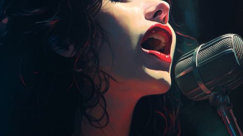 anime, hand-drawn and cell animation techniques, a wide shot of a happy teenage-aged asian girl with long black hair wearing a blue dress and she is singing with her eyes closed and there are music notes coming out of her mouth, natural design, beautifully rendered and expressive rich colors, vibrant pastel colors, sharp attention to detail, realism and a strong sense of nostalgia and warmth, sharp attention to small details and textures, fantastical creatures, settings, depth and emotions emphasized and accentuated by lighting and shading, extremely high quality, incredibly high finite definition, high resolution, hand-drawn and cel animation techniques, anime --ar 3:2 --stylize 1000 --q 2