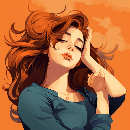 girl with her hand on her chin closed eyes , her hair is zoo of animals , vector art style
