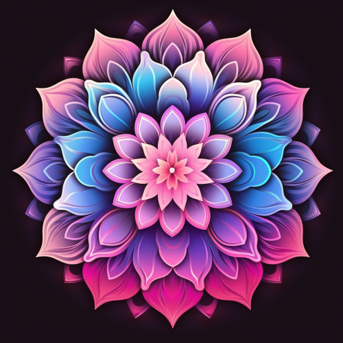 elegant flower mandala with trippy and colorful effects. CMYK color profile. Pink and purple colors. --ar 1:1