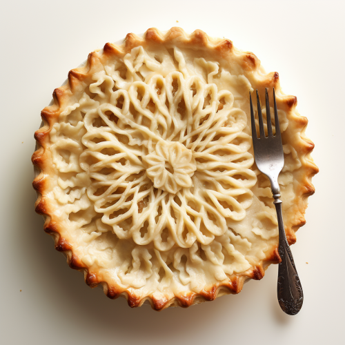 professional, up-close and modern food photography of a pie crust, fork holes pierced on the bottom of pie crust, white background