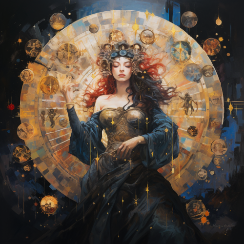 veracity and worship with styled stain glass windows in the cathedral of the cosmos, in the style of colorful gilded oil painting --ar 20:16 --s 210