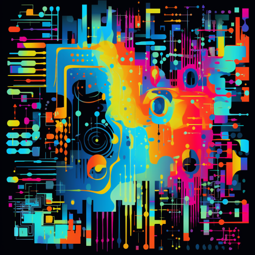 Abstraktes digitales Kunstwerk, das den Austausch in einer Umfrage symbolisiert, mit beruhigendem Farbverlauf, einfachen Icons für Teilnahme und Ergebnisse, verbunden durch dynamische Pfeile, hohe Auflösung.
