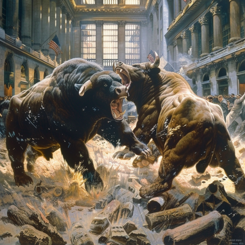 A jubilant day trader celebrating stock market gains at a lively stock exchange, traders cheering in the background, energetic and euphoric atmosphere, journalistic photography with a zoom lens, --ar 16:9 --v 5.0