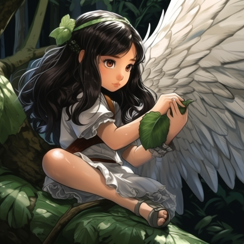 angel of soursop, little girl with wings eat soursop, highly detailed, manga style, shojocon, 4k,--ar16:9