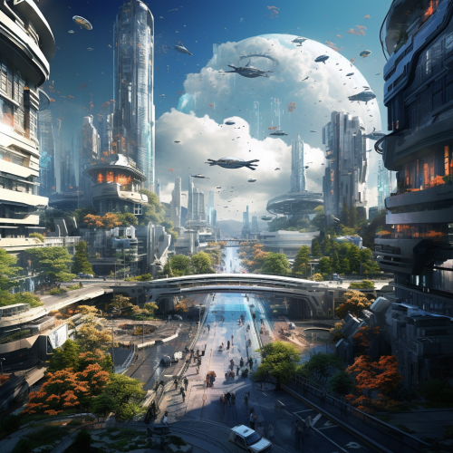 xxi century city, cyberpunk, fountains, luxurious megapolis, elegant architecture, explosions, planes in the sky, war, battle, city ruins, white buildings and streets