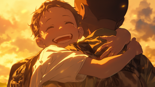 a black South African 10-year-old child hugs a caucasian South African 10-year-old child, they are in South Africa, it is day, high-definition, anime-style, --ar 16:9 --niji 6