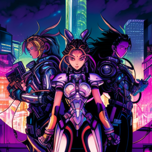 "A CLAMP-style manga scene featuring three Mexican magical warriors standing in a mystical, futuristic cityscape. Their intricate braided hair shines under neon lights as they summon their magic, which takes the form of glowing, abstract symbols. Their armor is a mix of traditional Mexican designs and sleek, modern technology, blending ancient culture with future magic." --v 4 --s 250