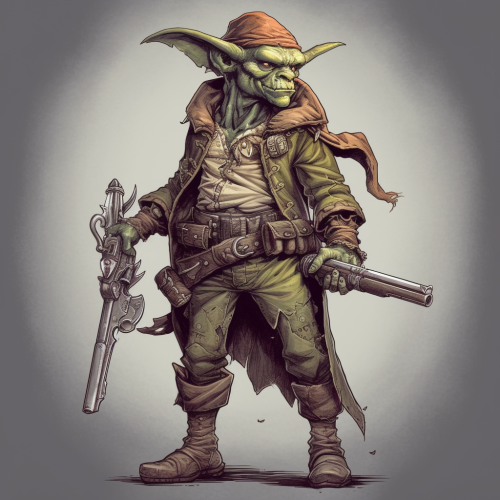 Goblin Pirate with a pistol and a saber, full body portrait, highly detailed, Dungeons and Dragons, fantasy --v 5.0