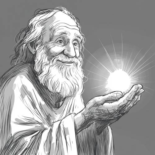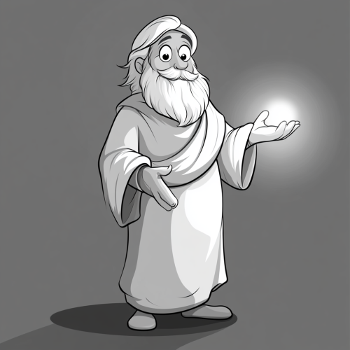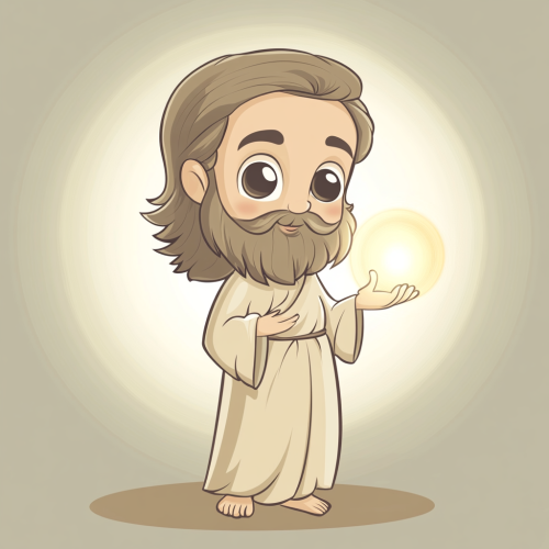 A very tender and loving figure of God as an adult, wise man with a warm smile and gentle big eyes, depicted in a simple, child-friendly style, gently casting a soft light from His right hand that illuminates half of the world, while the other half remains in shadows, marking the separation between day and night, cartoon style, soft lines, no shading, no gray tones, black and white only, designed for a coloring page, suitable for children aged 4 to 10, conveying warmth, safety, and love, Catholic theme