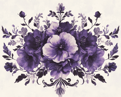 illustration of purple orlean with bakuchiol flowers, in the style of italianate flair, organic designs, aquarellist, decorative borders, classicist, bloomcore, purple and white --ar 5:4