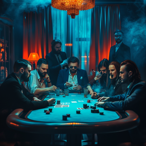 An elegant yet menacing scene in a dimly lit Italian restaurant. A group of well-dressed men in suits and fedoras sit around a table with glasses of limoncello, discussing plans. The background features a grand chandelier, red velvet curtains, and a classic Italian street visible through the window. Include the text 'La Famiglia - The Italian Mafia' at the top in a stylish, classic font.