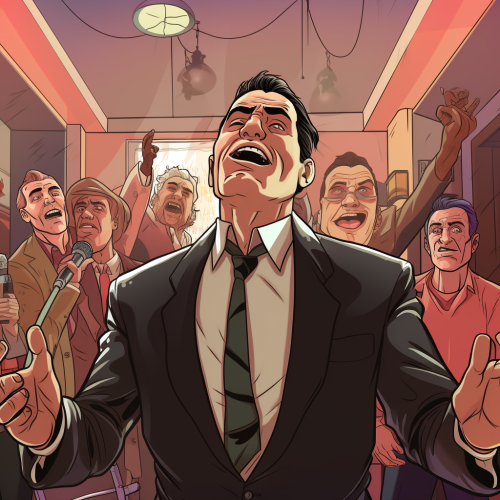 Create a poster of the Italian mafia at a karaoke party comic style drawings ar--3:5