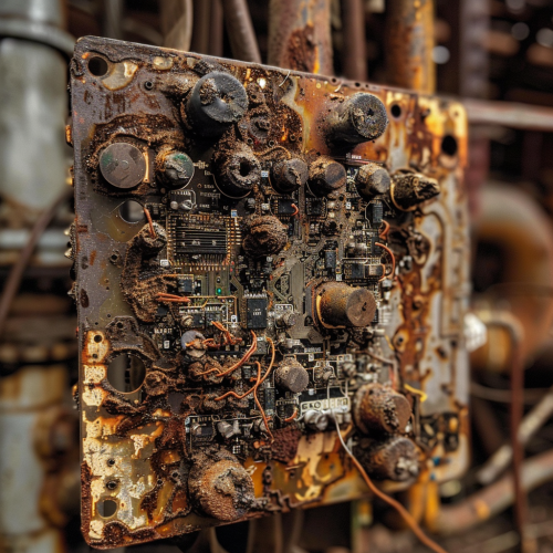 robotic flower blended with real flowers, dynamic circuits, motherboard, wires, realistic flowers, 3d, highly detailed, robot parts, single rose with thorny stem