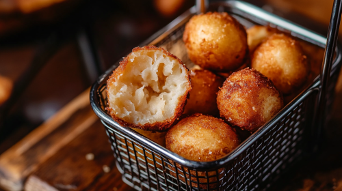 A close-up shot of golden, crispy breaded chicken tenders in a rustic metal basket lined with parchment paper. The tenders have a rich, crunchy coating, with tiny green parsley sprinkles for garnish. Next to the tenders is a small metal ramekin filled with creamy dipping sauce, lightly garnished with fresh herbs. The lighting highlights the crispy texture of the tenders and the smooth, rich consistency of the sauce. The overall look is warm and inviting, evoking a sense of comfort food
