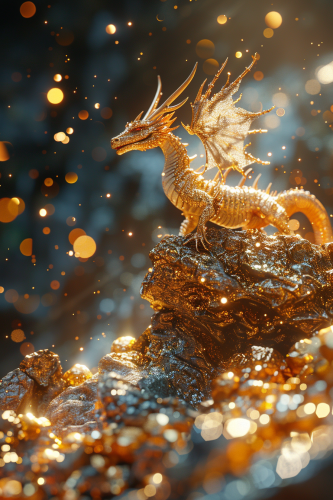 French-style children's illustration, featuring a full-body golden dragon with glowing wings and ruby eyes, with no text. High quality and high resolution, with soft colors. --v 6.0