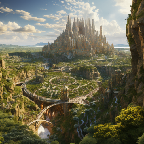 massive midevil mega city with giant walls and lush farmland