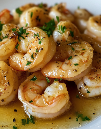 amateur photo from reddit. taken with an Iphone 15 pro. A close-up of a plate of shrimp cooked in a garlic butter sauce, garnished with chopped parsley. The shrimp are golden and glistening with the rich, fragrant butter, with the sauce pooling on the bottom of the plate. The dish is simple yet elegant, with the parsley adding a pop of color and freshness., natural lighting, savory plating: e --ar 61:78