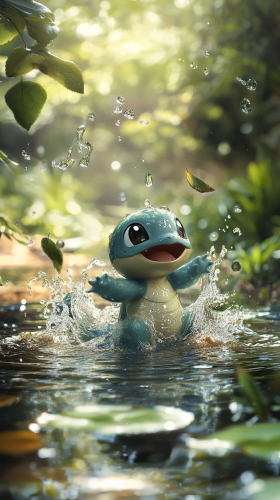 A cute goldfish swimming gracefully in a crystal clear pond, surrounded by vibrant water lilies and delicate bubbles --chaos 5