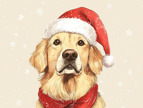illustration of a Golden Retriever sitting infront of the eiffel tower in a snowy winter day with scarf on him, drawn in the style of Oliver Jeffers, soft light, pastel colors, Christmas theme, childrens book illustation --ar 5:3 --v 6.1