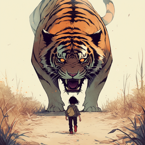 GENERATE A GOLDEN SABERTOOTH TIGER FLAT STYLE ART WALKING