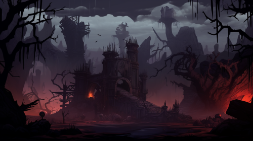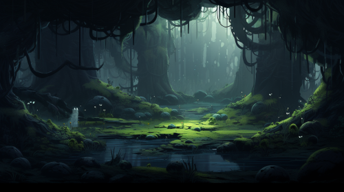 simple background for 2D platformer (kinda like hallow knight) where the mutations go to the extreme and where the characters are completely changed. The environment is filled with monsters with mutations and deformations --ar 16:9
