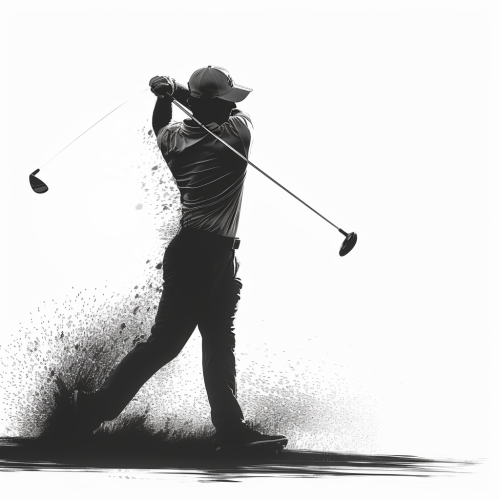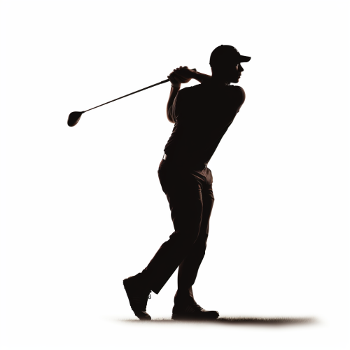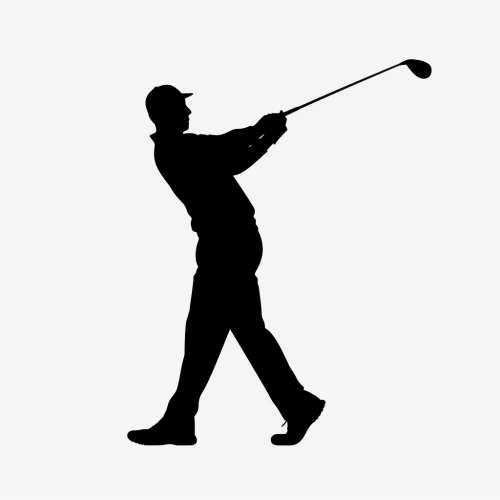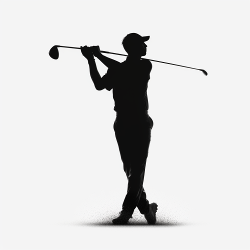 clean and simple solid black golf swing silhouette white background. --s 50 --v 5.2 --style raw