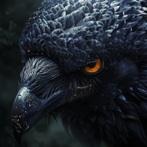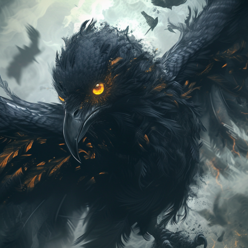 Black Giant Raven, Amber eyes, dnd, dynamic pose, high resolution, hyper detailed, Etheral, artistic details, dark --v 6.0