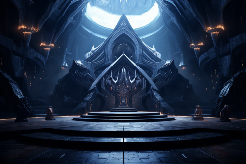 futuristic gothic obsidian throne room, massive cavernous obsidian hall, roofless, open air throne room, night time under stars, award-winning architecture photographu --ar 3:2