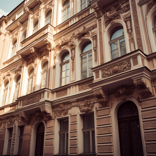 photo of, Historic St. Petersburg architecture, in St. Petersburg , hyper-realistic image, shot on a Nikon 35mm, natural lighting --ar 1:1 --v 5.0 --no words, people