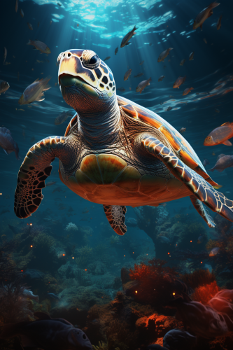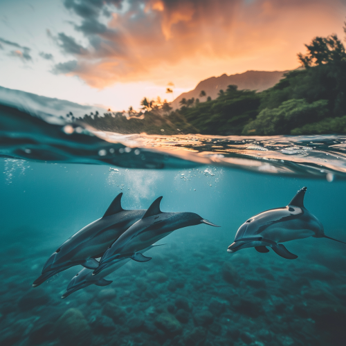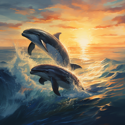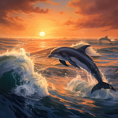 Graceful dolphins dancing in the waves, along with majestic whales roming the sea.