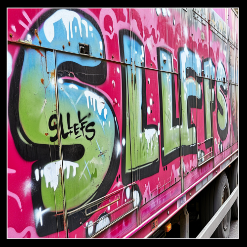 A bold, graffiti-style mural of Magic Johnson, emphasizing his larger-than-life personality and legendary career. The design should incorporate abstract, spray-painted lines and vibrant colors, with Magic depicted in his classic Los Angeles Lakers jersey, with the number 32 prominently featured. His figure should be dynamic, in action, either passing or dribbling a basketball, capturing his iconic playmaking. The background should feature urban textures, such as concrete walls, brick, and street art elements, with graffiti tags, splashes of paint, and energetic, chaotic lines. Include iconic symbols like basketballs, championship rings, and the Los Angeles skyline subtly blended into the design. The color palette should include Lakers purple, gold, and highlights of electric blue, with glowing accents and neon effects. Stylized text that reads 'Magic' and '32' should be incorporated, using a graffiti font to enhance the street art vibe. The overall effect should be intense, urban, and visually captivating, celebrating Magic Johnson’s influence both on and off the court. --v 6.1
