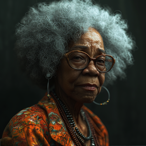 Ultra realistic promotional photo shoot of afro grandma soul band, 8k, (((ultra realist detailed body))) (((detailed hand))) (((realist skin))) --v 6.0