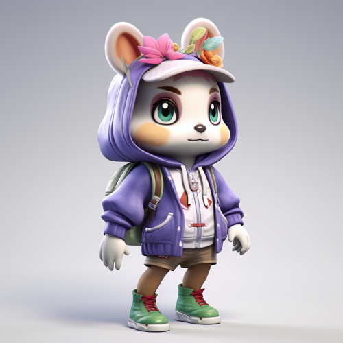 animal crossing in baggy mysterious streetwear outfit, white background